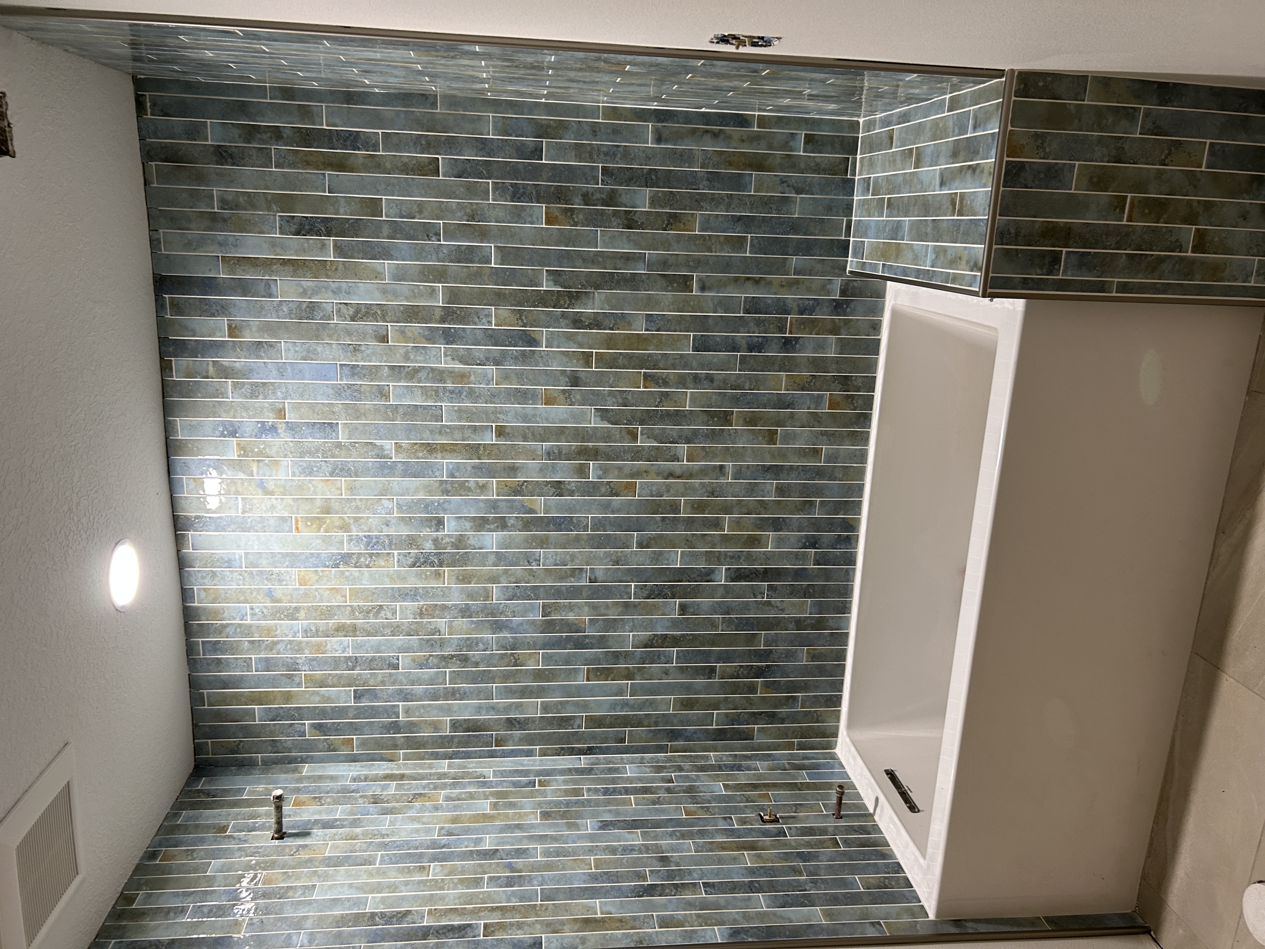 Reminds me of the beach and ocean! Arrived with minimal breakage, installer comments that it was easy to work with, cuts and snaps well. Pictures do not justify how beautiful the finished project looks.