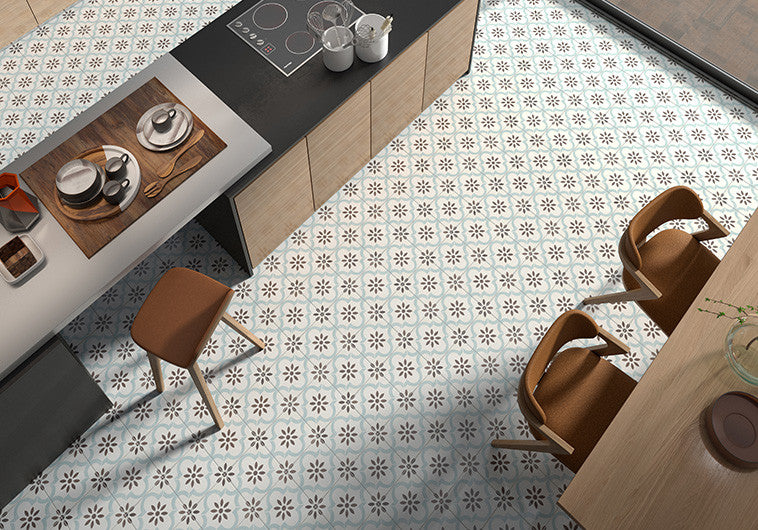 Enhance your space with the refined charm of the Florencial Collection FLO-9380 Pisa Bella Porcelain Tile. Inspired by traditional encaustic cement designs, Pisa Bella offers a beautifully detailed pattern that captures old-world craftsmanship while delivering the modern advantages of porcelain. Its balanced geometry and subtle visual movement make it a versatile choice for both contemporary and classic interiors.