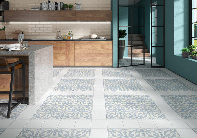 The Florencial Collection FLO-9386 Genoa Sky Porcelain Tile delivers the charm of traditional encaustic cement tile with the durability and easy care of porcelain. Featuring a soft, balanced pattern with calming tonal movement, Genoa Sky creates a refined yet inviting surface that works beautifully in both classic and contemporary spaces.