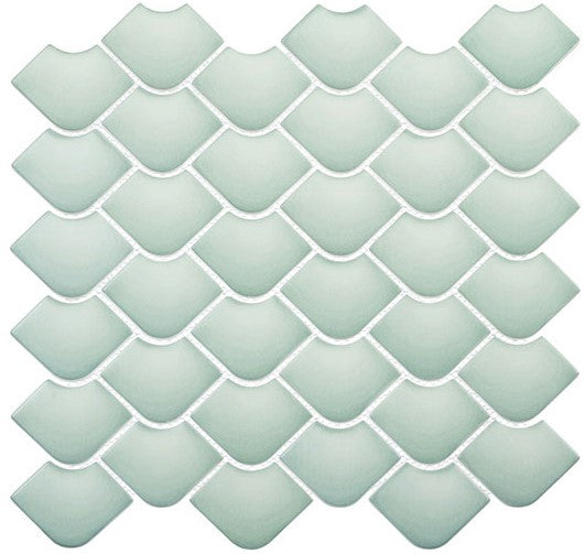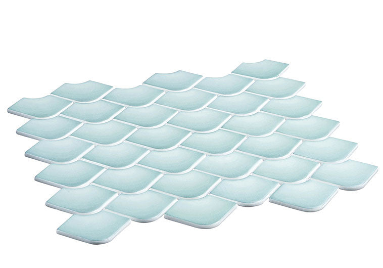 Bring the serene beauty of the sea to your home with the My Tile Backsplash Mermaids Collection Fish Scale Design Pool Tiles MID-6083 Esmerald. Featuring a graceful 2" x 3" nominal fish scale shape, these tiles create a fluid, wave-like effect that instantly elevates any pool, bathroom, kitchen, or accent wall.