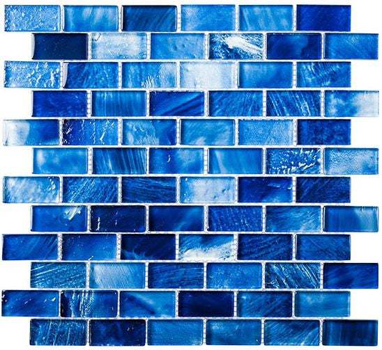 NAT-3604 Peru Diving from the Natural Beauty Collection captures the vibrant energy of crystal-clear tropical waters. Featuring a dynamic blend of bright blue tones in a sleek 1" x 2" format, this glass mosaic tile combines smooth and undulated surfaces to create depth, shimmer, and movement.