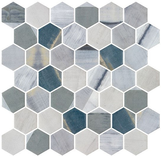 New Belfont Greigo Elegance – 2" Hex Recycled Glass Mosaic Tile