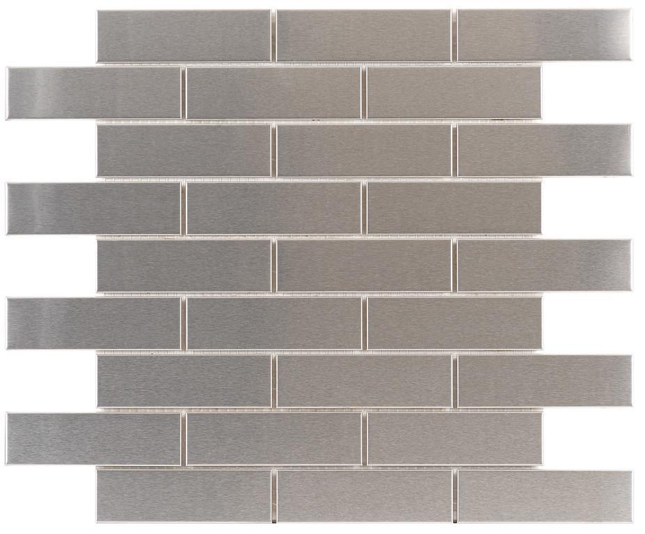 The Stainless Steel 1x4 Subway Tile Mosaic (Item 411-017) is a sleek and modern choice for enhancing any interior space with a contemporary touch. Each tile is crafted from high-quality stainless steel, offering both durability and a polished, reflective surface that adds depth and sophistication to kitchens, Living Rooms, and accent walls. Measuring 1x4 inches, these subway tiles are arranged on mesh sheets, with each sheet covering 0.92 square feet, making installation quick and seamless.