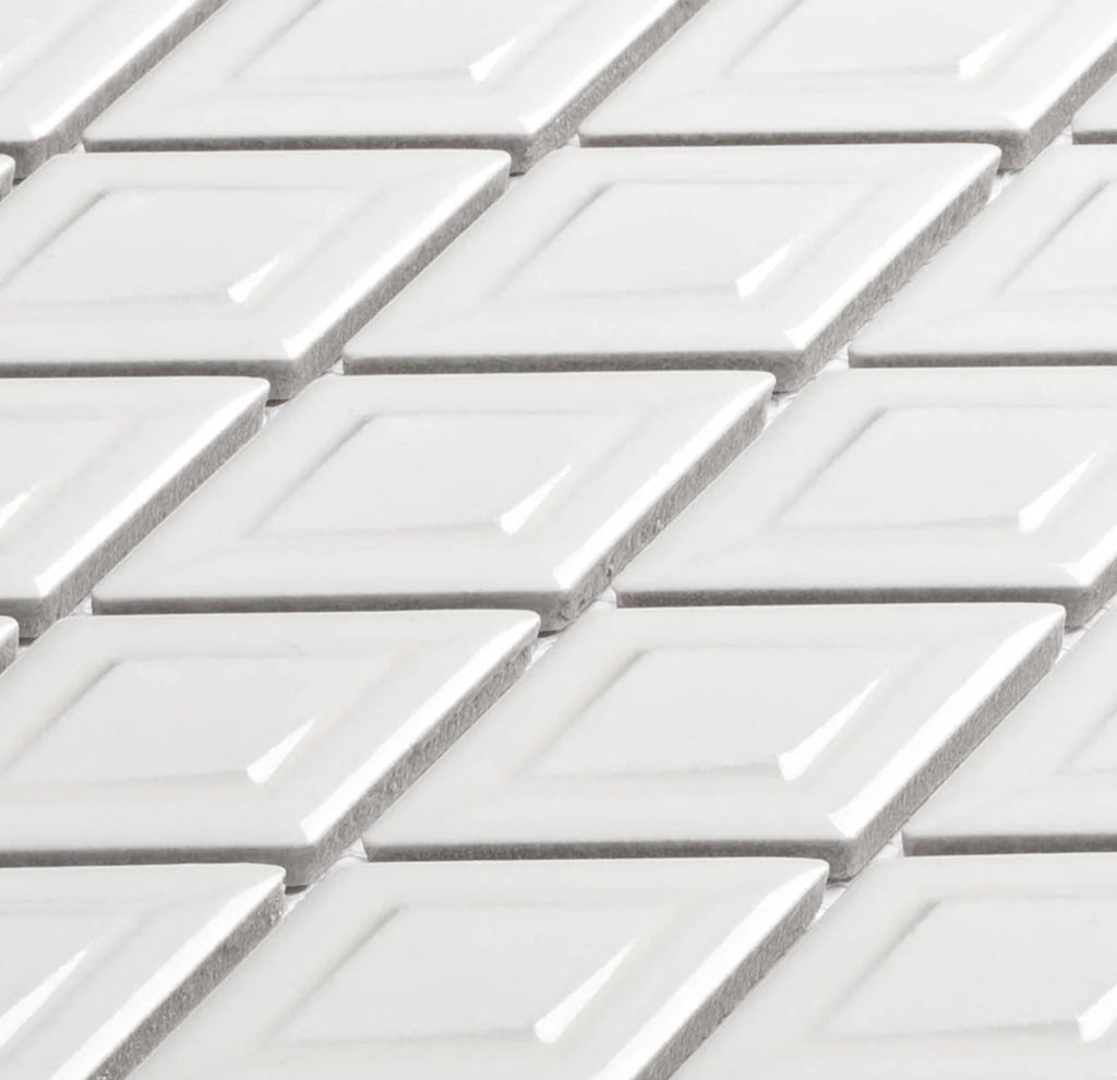 Bring contemporary dimension and soft sophistication to your next design with the Tetragon Series 3D Diamond Shape Porcelain Mosaic TET-6331 Oxygen. Crafted in a refreshing white tone, this porcelain mosaic tile creates a clean and luminous surface that beautifully reflects light from every angle. Its diamond-inspired 3D pattern adds depth and texture, making it a perfect accent for modern kitchens, bathrooms, and feature walls.